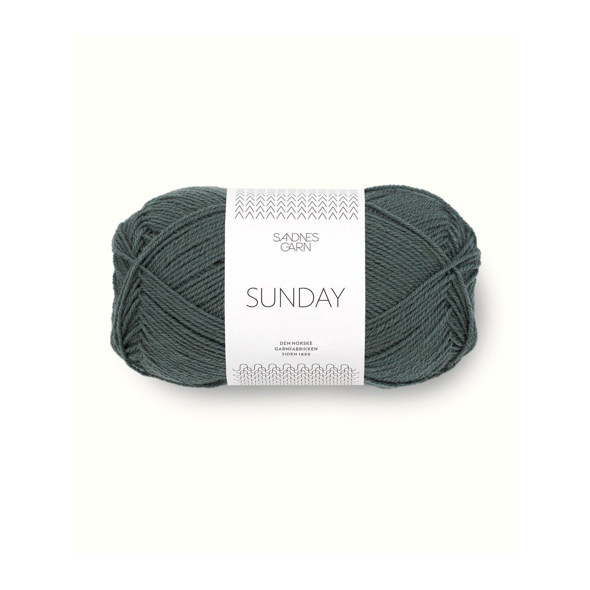 サンデーは、100パーセントメリノウールの細番手糸で、軽さと適度な張りを併せ持っています。スーパーウォッシュ加工を施していないため、ウール本来の質感が残り、編み地は密になりすぎず、空気を含みやすい仕上がりになります。