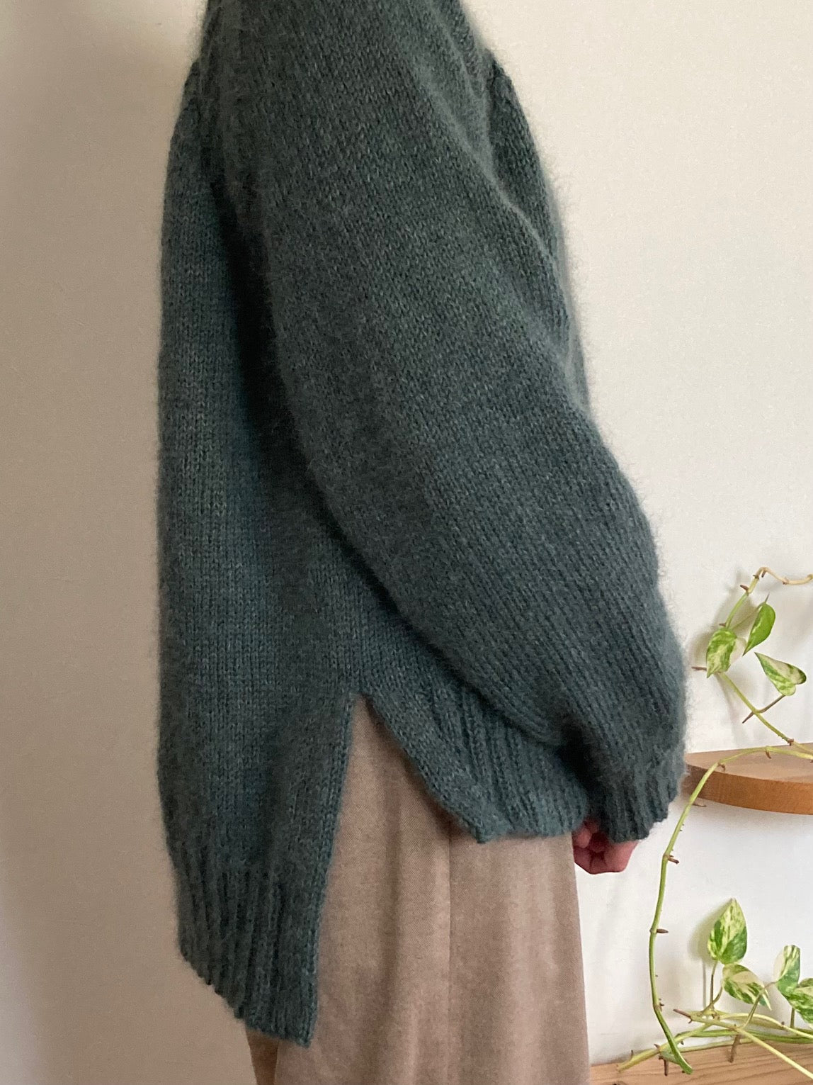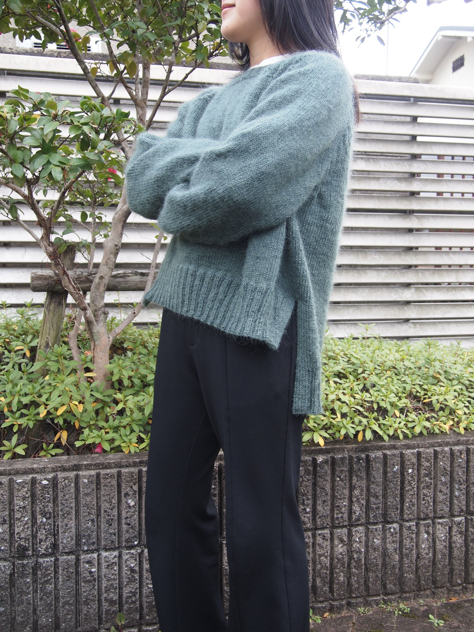 この2種類の糸を組み合わせることで、軽さ、暖かさ、落ち着いた質感のバランスが取れたセーターに仕上がります。