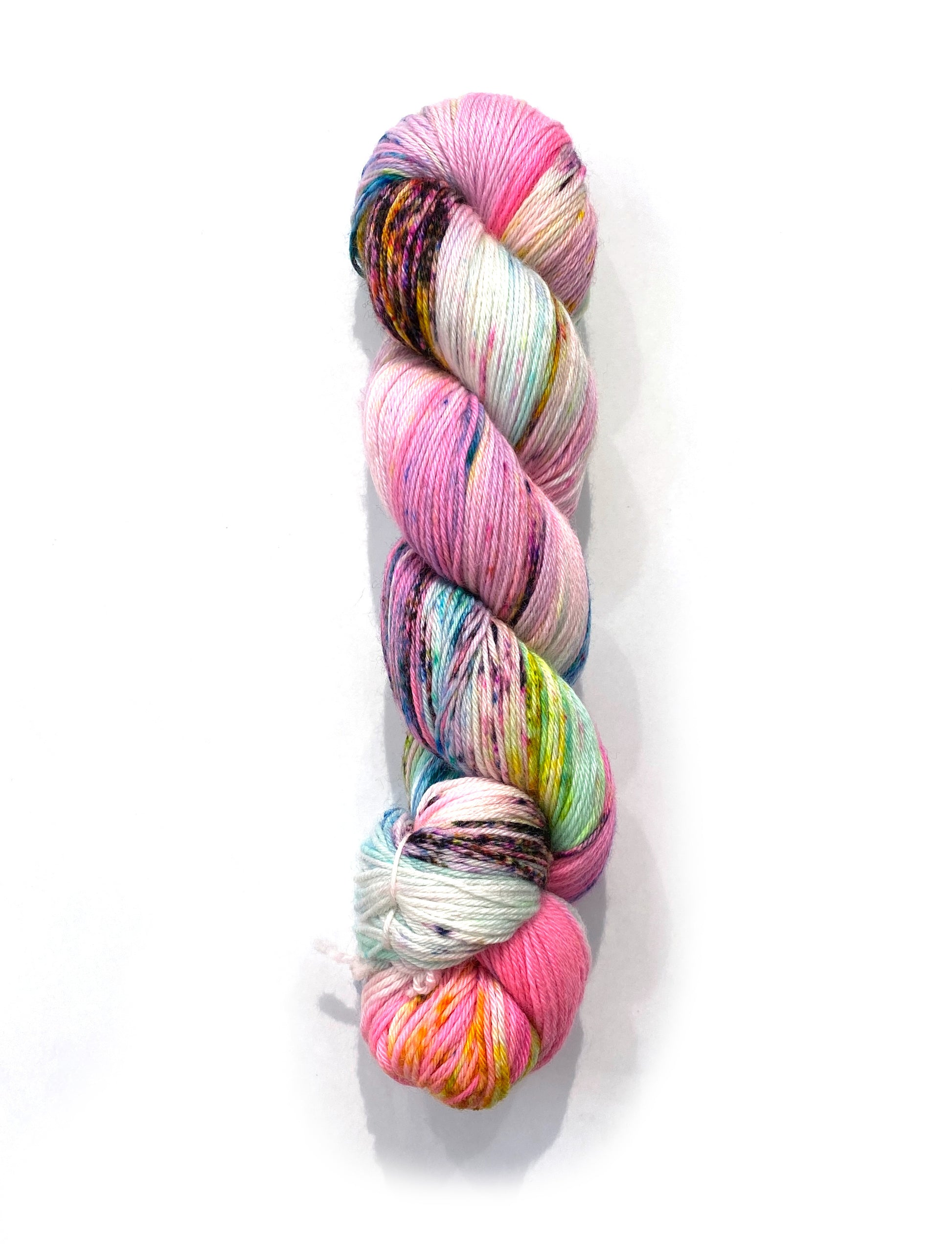 メリノ90%・ナイロン10%のブレンドは、スーパーウォッシュ加工済み。ストライピングやプーリングを防ぐランダムな染色により、平編みも複雑な模様も美しいまだら効果を楽しめます。ステッチが一目ごとに際立つため、作品全体が生き生きと輝きます。