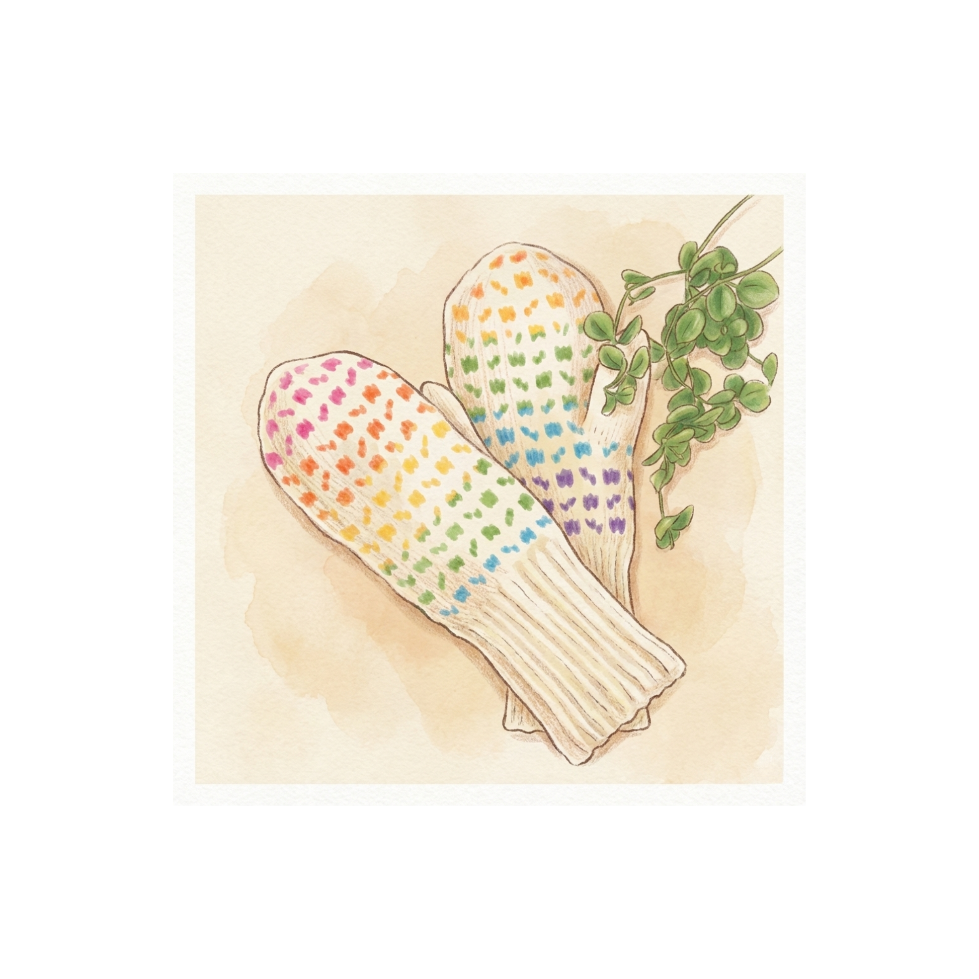 編むほどに色が変わる楽しさを、ミトンで