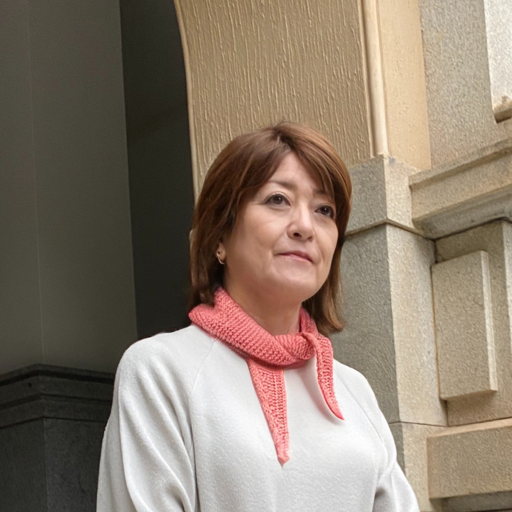 ウール糸で編んだ場合と比べると、立体感よりもラインの明瞭さが際立ちます。編み地の陰影が穏やかで、服の上に重ねたときも主張しすぎません。春から初夏、また室内の冷えを感じる場面まで、使用期間を広く想定できるスカーフです。